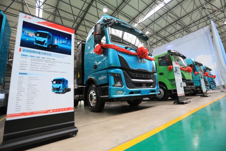 邢台市信都区龙冈经济开发区的河北长征汽车制造有限公司生产的第一批新能源重卡车辆下线。 高晓博摄