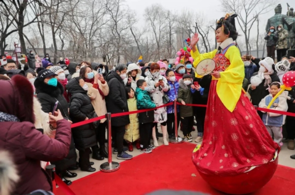 拉洋片、画糖画、说相声、魔术表演、传统古法花式茶艺表演等让人目不暇接,庙会可以让市民游客了解传统民俗文化、体验民俗乐趣,感受中国传统文化的独特魅力。市民刘彦文高兴地说:“我们一家五口来感受咱们中国传统文化,一进来就看见了舞狮和花车,非常热闹,过年的味道又回来了!”