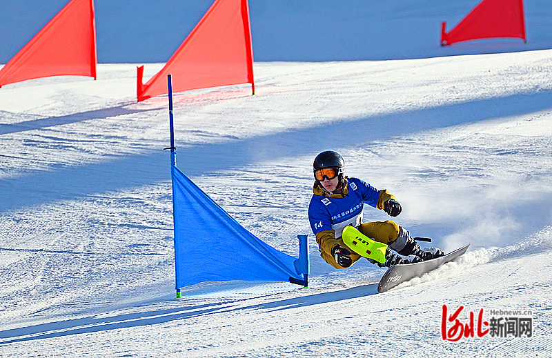 2月6日,参赛选手在河北省第四届冰雪运动会单板滑雪大回转项目比赛中。 河北日报记者张昊摄