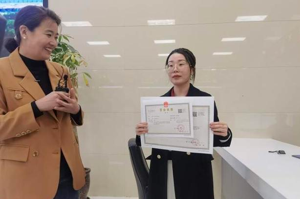 2月7日上午,在石家庄市正定县政务服务大厅,工作人员用时4分钟为河北比邻科技有限公司办完营业执照。董昌摄