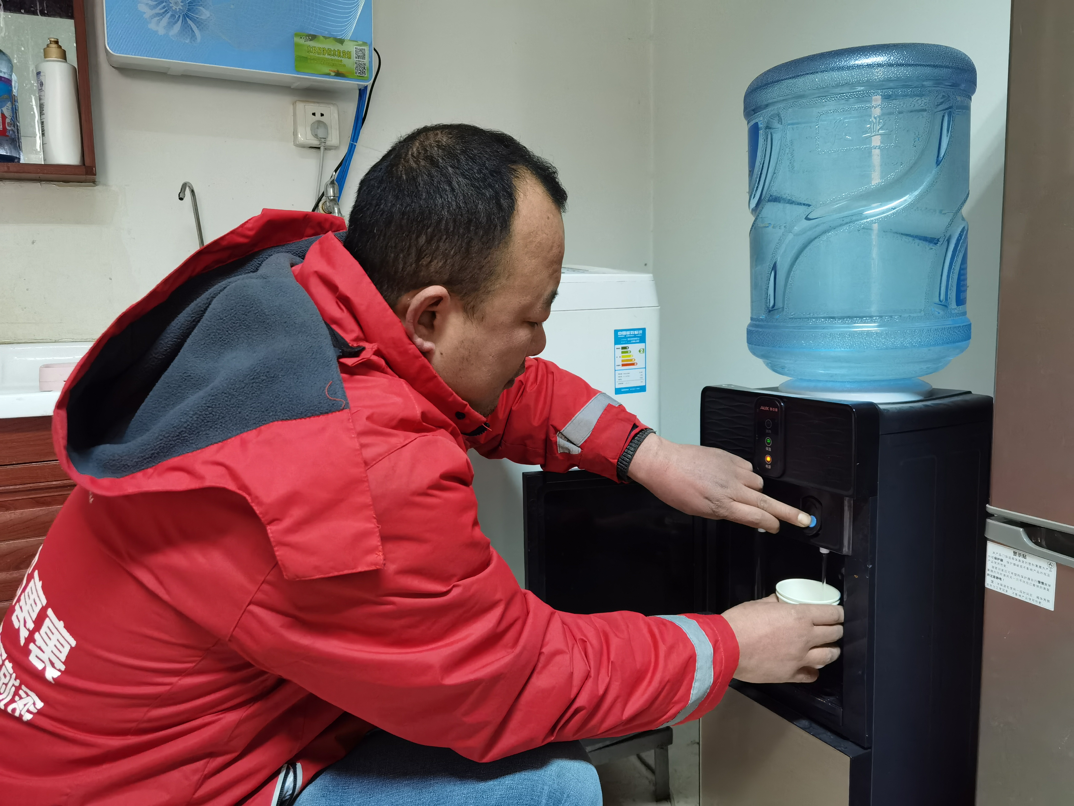 保定晚报讯(记者霍若雯)“大冷天里多了一个能让我们接到热水的地方,我和同事们心里都感觉特别温暖!” 2月8日,在莲池区联盟路街道金玉兰社区党群服务中心红色驿站,刚送完一车货的快递员高先生从饮水机里接了一杯热水边喝边说。