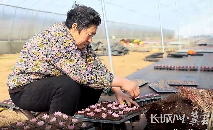 张志远的花棚每年要雇佣十几名村民帮忙打理,一些老人也能得到一份稳定的收入。长城网·冀云客户端记者 李皓 摄
