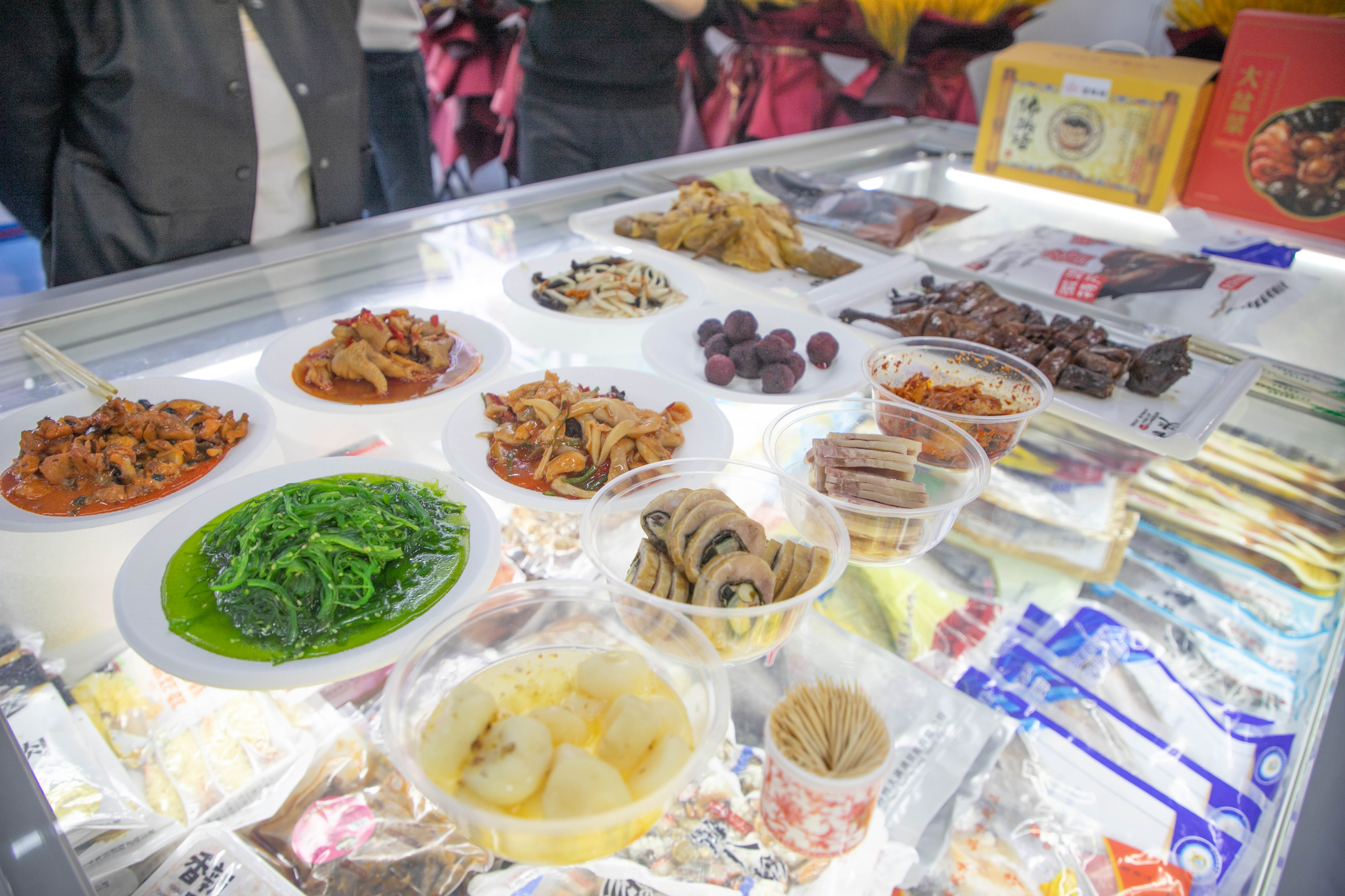 走进展销体验中心,近万种预制菜琳琅满目,各式即食、即烹、即热、即配类预制菜应有尽有。糖醋鲤鱼、红烧排骨、清蒸鲈鱼……拆开包装、简单烹饪,一盘盘色香味俱全的菜品端上餐桌即可食用,可充分满足广大消费者对预制菜不同种类的需求。展厅内人头攒动,前来品鉴、预定的客商络绎不绝。