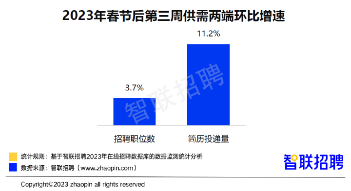2023年春节后第三周供需两端环比增速。图片来自智联招聘