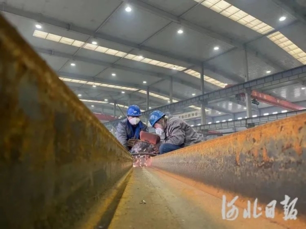 近日,秦皇岛永祯钢结构制造有限公司生产车间内,工人正在抓紧生产钢结构制品。河北日报通讯员徐鹏远摄