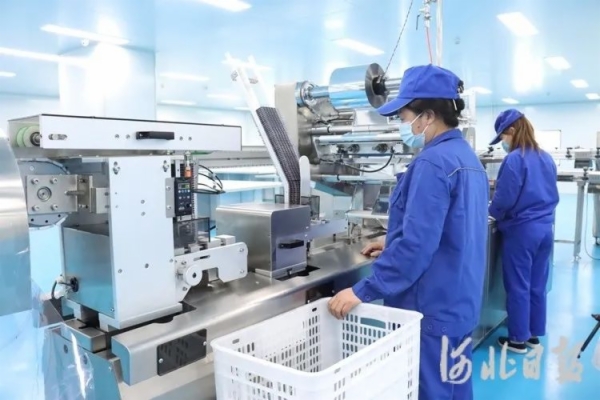 近日,秦皇岛大恩药业有限公司外包车间全自动生产线正在包装蒲地蓝消炎片。河北日报通讯员徐鹏远摄