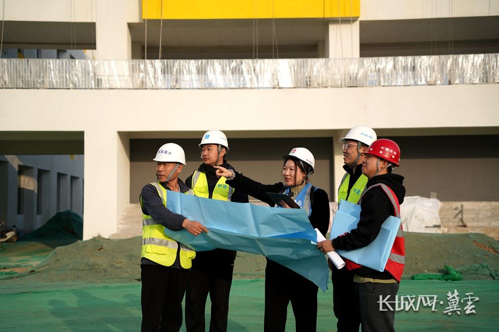 郑文(中)在项目工地工作。长城网·冀云客户端记者 马宁 摄