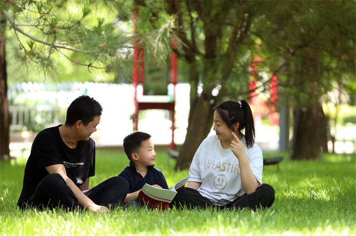 市民在邢台市隆尧县唐尧公园游玩。新华社记者骆学峰摄