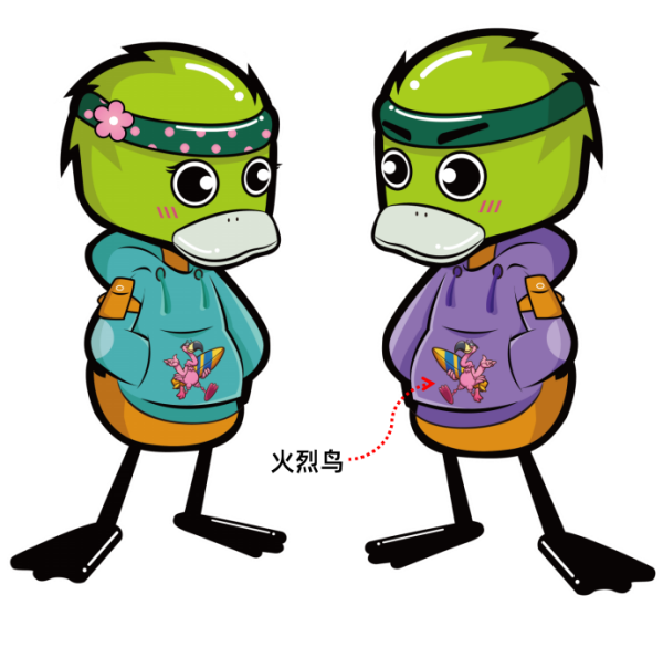 视觉一(爱你邮,火了~呀!微潮版IP):以青头潜鸭为原型的IP视觉。