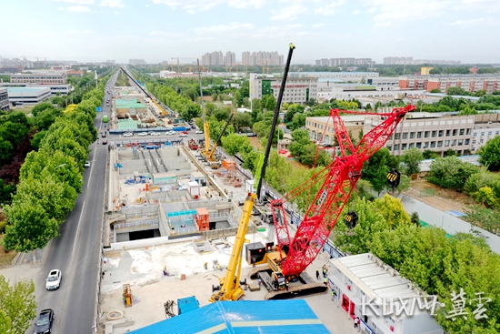 北京轨道交通22号线河北段神威大街站正在进行盾构吊装下井准备工作。长城网·冀云客户端通讯员 周东昊 摄