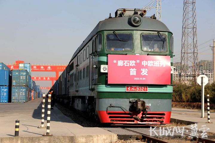 2022年11月8日,首列“津石欧”中欧班列从天津新港站开往石家庄国际陆港。