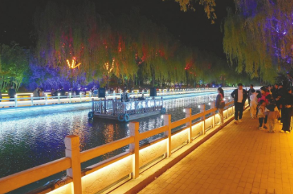 “我们先后增设了灯光秀、景观拱桥、游船码头等,还安装了89个特色集装箱商铺,集食、游、购、娱、演多种业态。”任泽区城市管理综合行政执法局局长颜洪涛介绍,如今,饮马河步行街已成为当地居民乃至邢台市区游客的“网红打卡地”。