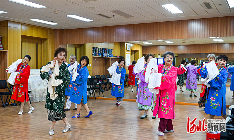 7月21日,老人们在三河市燕达金色年华健康养护中心舞蹈室里学习京剧。三河市紧抓机遇,大力发展“医养康”相结合的养老机构。 河北日报记者 耿辉摄
