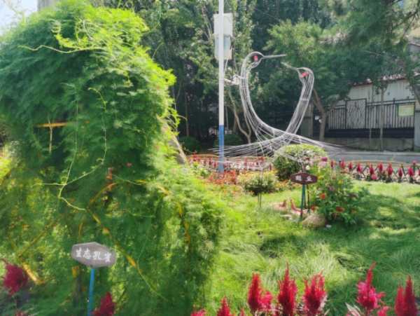 在秦皇植物园主道边,一座高约2米的红色大蝴蝶吸引着游人的目光。“这只大蝴蝶太漂亮了,鲜红的颜色搭配绿油油的植物,绝美啊!”市民王玮不禁拍照留念。