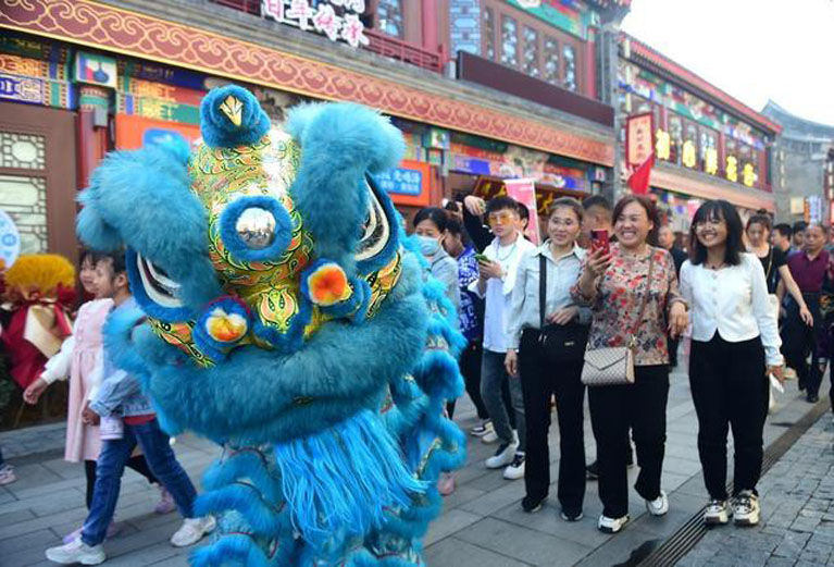 街道上游客摩肩接踵