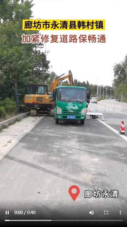 据了解,此次洪涝灾害造成永清县域内多条干线公路、农村公路不同程度出现了路面塌陷,路基、边坡水毁严重,大量垃圾杂物被冲上公路,严重影响过往车辆及行人安全。永清县交通运输局立即启动了抢险应急预案,防汛战备骨干力量迅速集结,第一时间赶赴受灾一线,利用无人机等设备对省道廊霸线、廊涿线和重点县乡道路韩古线、管韩线、曹管线、曹韩线、古焦线以及灾情严重的村街外通公路进行拉网式排查,快速摸清公路水毁情况,紧急制定抢险方案,全力以赴组织抢修工作。