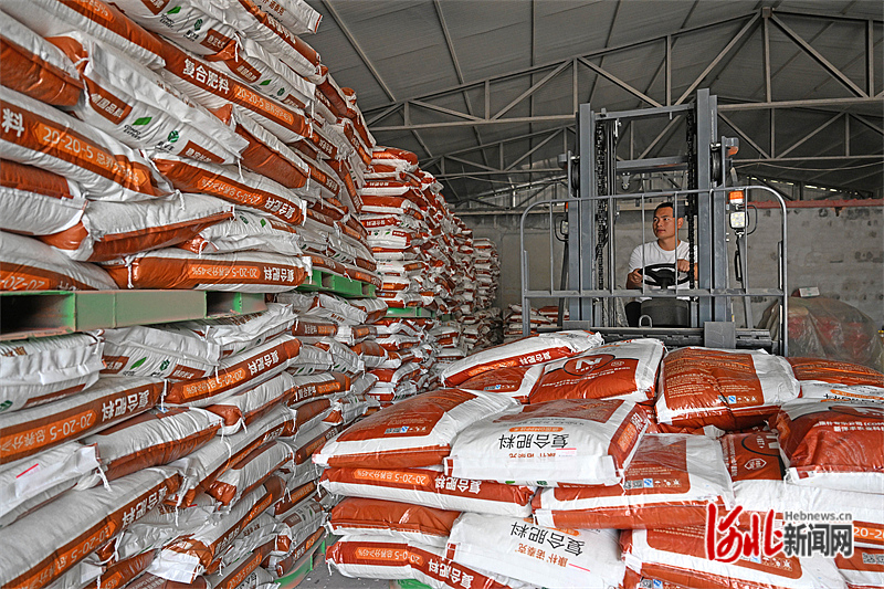 10月11日,献县农资销售人员在装运化肥。献县积极调配货源,增加储备,确保秋耕秋种期间肥料供应量足、质优价稳。
