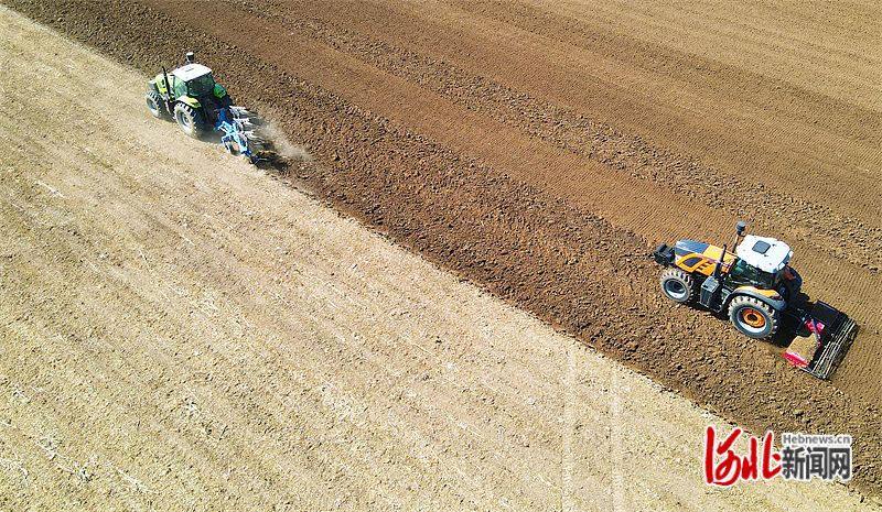 10月9日,邢台市南和区东薛屯村农民在田间深翻和旋耕土地,准备播种冬小麦。