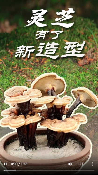 灵芝盆景好看是好看,可种起来并不容易。一般来说,要先在脑子里想好造型,然后通过嫁接菌柄搭好雏形,让其自然生长。这样长大的灵芝既能观赏又能食用,身价自然涨了不少。