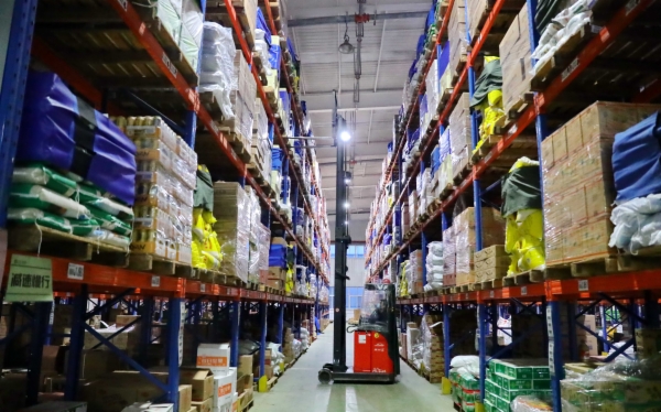 秦皇岛兴龙广缘物流仓库自动化运送货物。