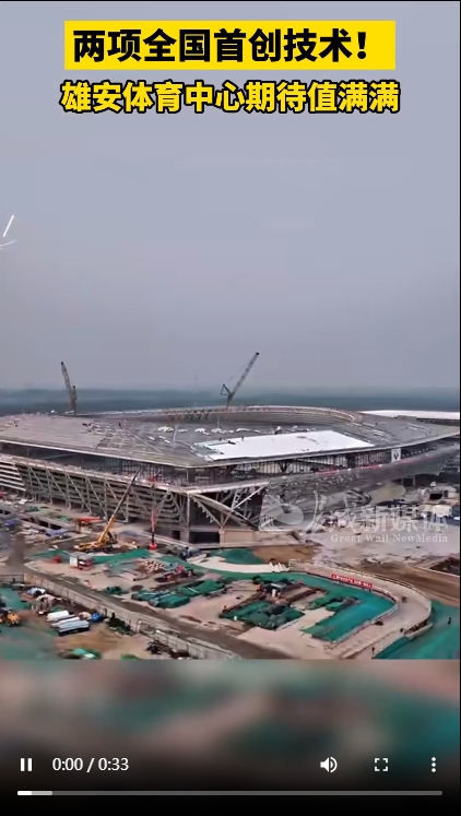 雄安体育中心是启动区重要标志性建筑之一,包括体育场、体育馆、游泳馆三个单体建筑,以及附属建筑和配套室外工程,总建筑面积18万多平方米。