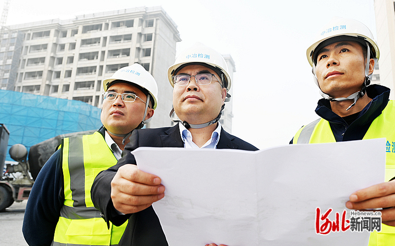 11月1日,吴治国(中)在雄安新区启动区某项目工地现场调度工程检测工作。 刘光昱摄