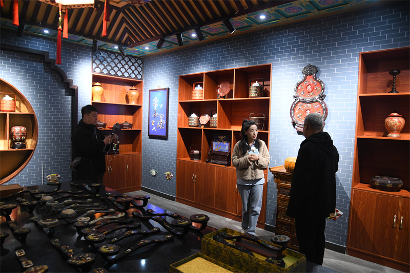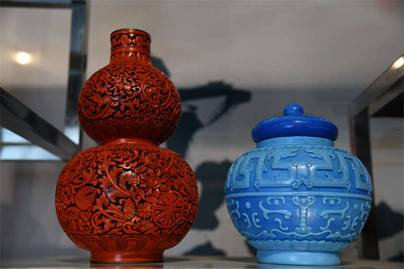 精美的漆器、景泰蓝、仿古家具让达人们叹为观止,近距离观赏,用手感受纹理。“漆器,可以用一句话来形容,‘百里千刀一两漆,一件器物万人工’,说的是取漆的过程比较艰难,制作工艺比较复杂……过去,做漆器是要用女人的头发做最后一遍抛光,好的漆器抛光后用手触摸像婴儿的肌肤,是非常光滑的。花丝镶嵌的最后一次抛光则是用木炭……”不知不觉“讲解人”的身边围满了人,讲完后他笑着说,“我其实是来送东西的,看大家来到我的家乡,我很乐意为我的家乡代言!欢迎你们以后有机会再来,这里的每一个物件背后都有有趣的故事。”