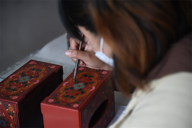 “漆器可以和任何工艺相融合,这是一件脱胎漆器,仿的是故宫的菊花瓣盒,融入了雕填工艺、百宝镶嵌工艺,由三种非遗技艺共同打造而成……”打开手机,视频里的镜头聚焦在类球形器物上,金黄的色泽显得雍容华贵,主播小宇正在直播。本次直播邀请了百宝镶嵌非遗传承人周洪俊和雕填漆器髹饰技艺非遗传承人缑建辉为广大网友介绍南汉村传统手工艺传承历史,讲述非遗技艺和背后的人文故事,现场体验非遗制作技艺,媒体达人们纷纷点赞围观。
