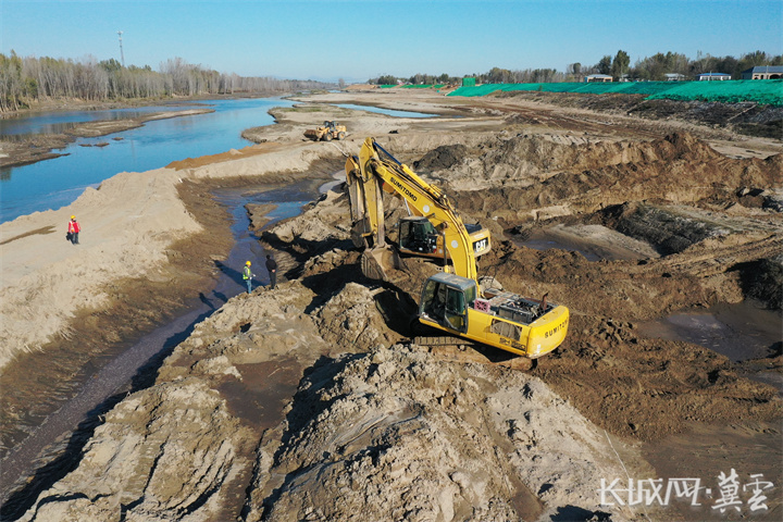 时值初冬,在白沟河治理工程涿州段左堤东茨村险工段建设现场,40余名施工人员正在进行格宾网石笼砌筑作业,这也标志着东茨村险工段的建设任务进入了尾声,河道内多台挖掘机和装载机轰鸣作业,冬日暖阳下的施工现场一片热火朝天。