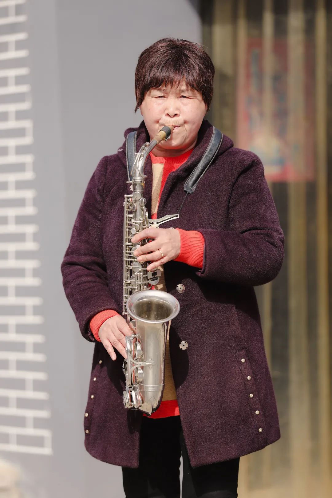 周窝村村民在吹奏萨克斯