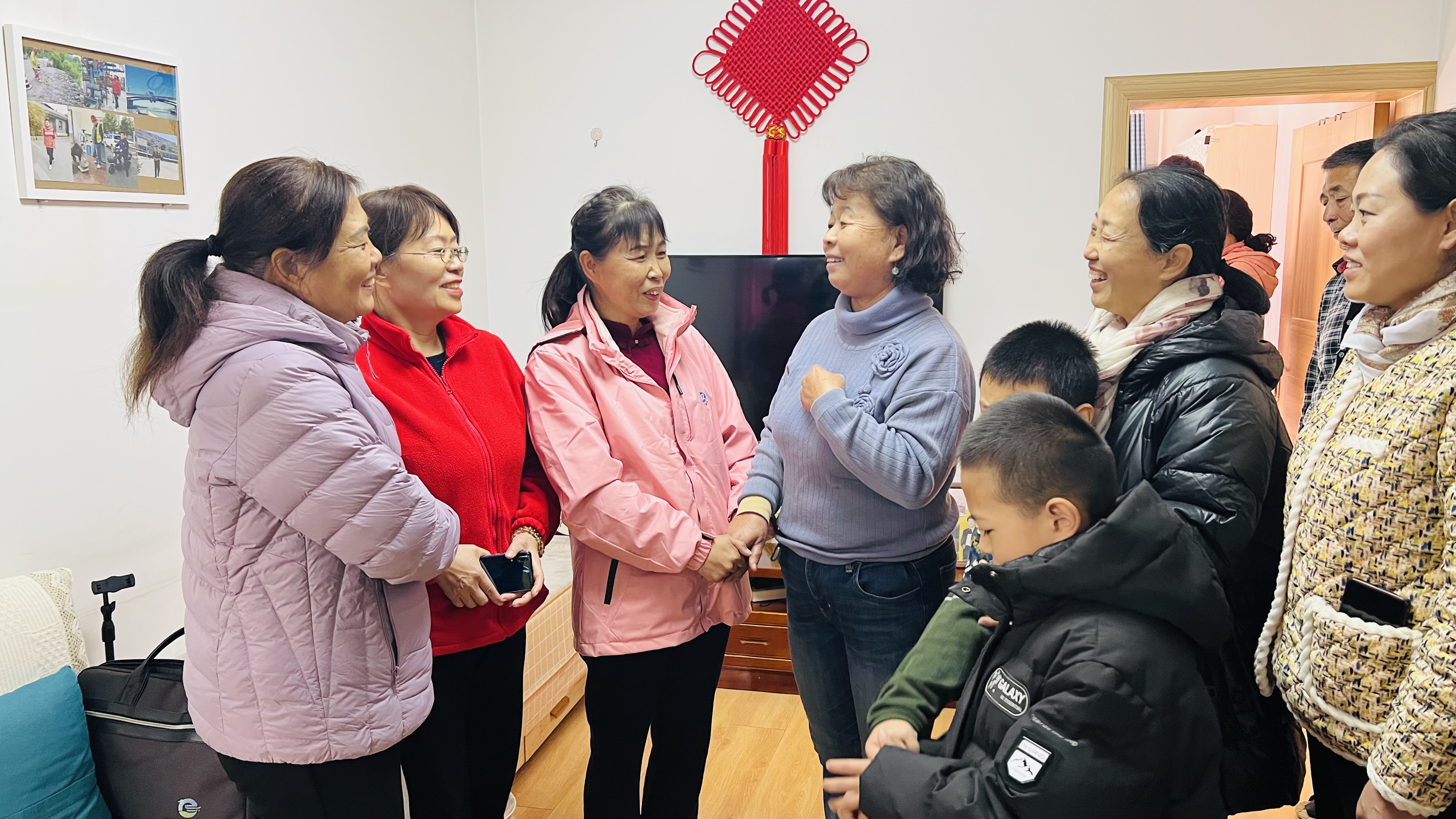 11月11日,街坊邻居聚在董彩英(左四)家,听她讲总书记来家里时的情景。 张洁 摄