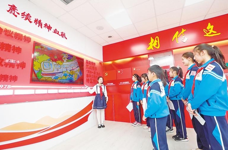 图为全国首家“红色少年传习馆”在市青少年宫正式对外开放。红领巾讲解员刘佳依为少先队员们讲述我党百余年的光辉历史。