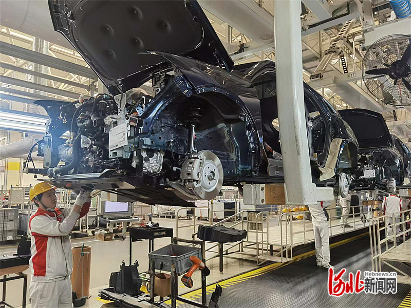 11月22日,长城汽车徐水分公司总装车间,工人正在装配魏牌蓝山智能新能源汽车。河北日报记者潘文静摄