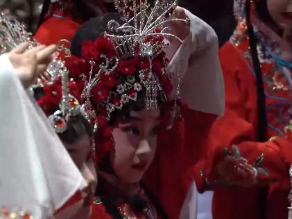 她叫刘子郁,今年6岁,戏龄3年。36斤的她,要身着几乎和自己体重相当的头饰和服装完成整个演出。