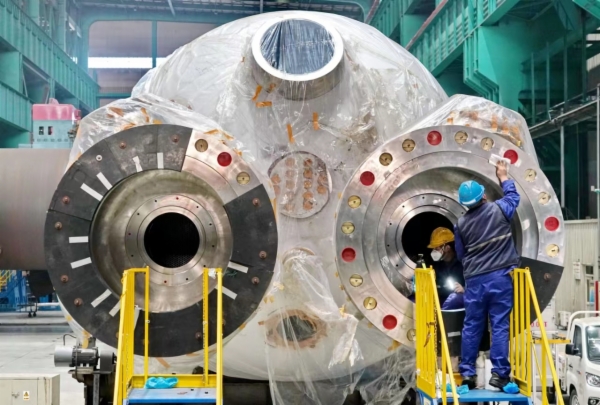 1月15日,哈电集团(秦皇岛)重型装备有限公司生产车间里,机器轰鸣、焊花闪烁,各条生产线高速运转。稳压器、安注箱、堆芯补水箱、余热排出热交换器等核电建设重要组件正在工人们的精心操作下加紧生产。