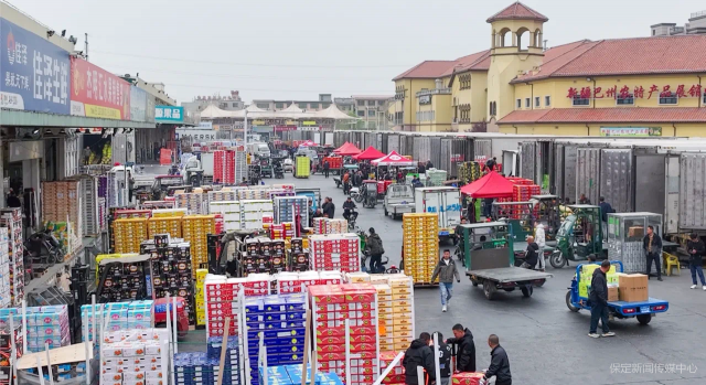 保定日报讯(记者张亚德 于建雪)2月2日上午,走进首衡高碑店国际农产品交易中心(以下简称“首衡高碑店市场”),来自全国和世界各地的产品种类繁多,前来批发采购的客商络绎不绝,满载产品的短驳车不停穿梭,洽谈、卸货、搬运、装车,一派购销两旺、烟火升腾景象。