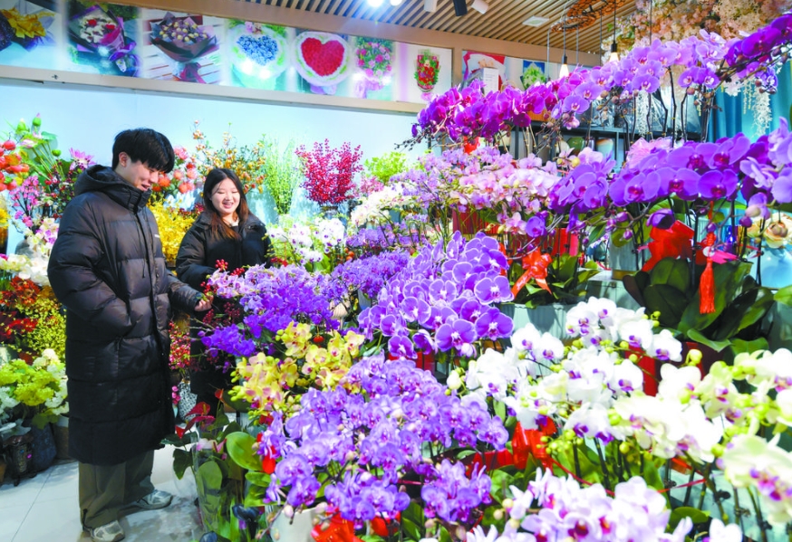 花卉市场里,各种迎新花卉盛开,充满了浓浓的喜庆气氛。