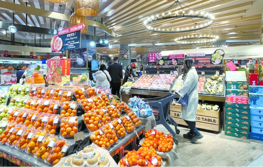 货架上琳琅满目的年货,丰富了市民的节日餐桌。