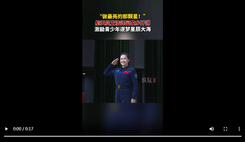 10月16日,中国首位女航天飞行工程师、神舟十九号航天员王浩泽回到家乡河北滦平开讲“梦想公开课”,为全县中小学生讲授航天科普知识,激励家乡青少年树立远大理想、传承载人航天精神。