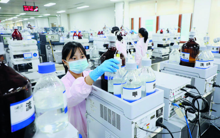 在石家庄四药药物研究院,研发人员正在进行新药的研发实验。本报首席记者 张 震 摄