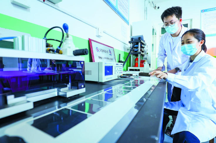 在石家庄铁道大学与河北鼎瓷电子科技有限公司共建实验室内,项目人员进行高性能材料研发。