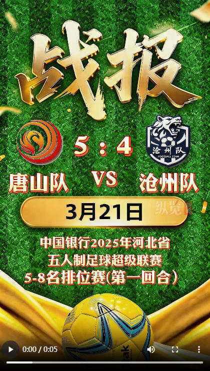 唐山队 5:4 险胜沧州队